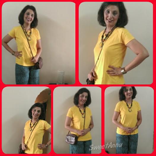 The outfit I picked up completely define my sense of style at the moment. The bright yellow t-shirt ( Rs 299/-) is a big yes for me on a sunny summer day to match with its vibes. I have teamed it up with a basic Grey and teal printed Pallazzo( Rs 599/-). This is so perfect to enhance my petite upper body and cover my thunder thighs. A flat casual pair of slippers, a matching neck piece, silver bracelet finished my look. Now I am ready to grace the summer heat for any event, but not without a pair of shades. The Male collection too had young and fun clothing. Lots of checkered shirts, kurtas, and bottoms one can easily choose for office, casual and party wear. I picked a Slim fit red and grey Cotton shirt ( 799/-) for a very special person and occasion coming up in April. Don’t need to cross my fingers because I know he will like it for sure.