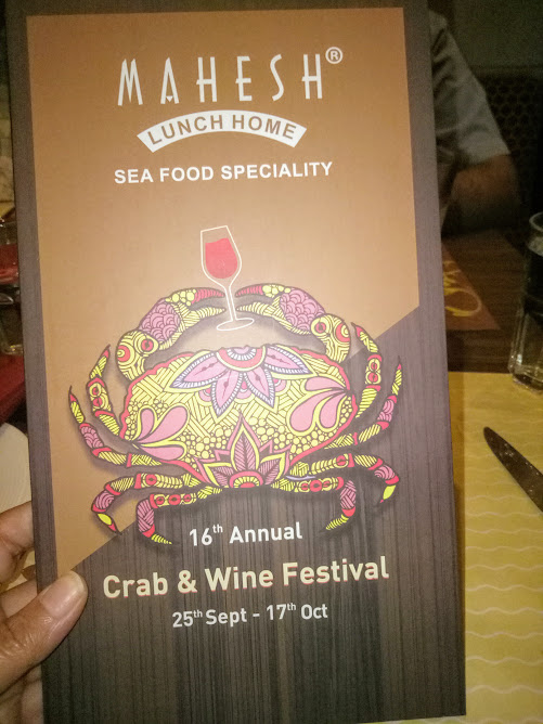 Mahesh Lunch Home Juhu is a restaurant that strives to live up to its name. This was the 16th year Mahesh Lunch Home, Juhu has been hosting the ” Crab and Wine’ festival. It began on 15th Sept and is on until the 17th of October.