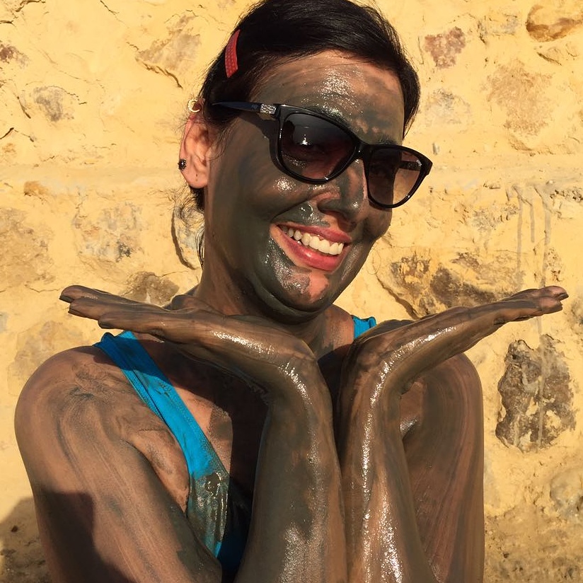 One dip in the Dead Sea was not enough. A Dead Sea mud mask can improve the appearance of your facial skin by improving elasticity and minimizing pores, wrinkles and lines. When it dries, toxins that may be present in your skin cells from your everyday diet are drawn out. Your face will feel clean and refreshed. The ritual was repeated before my final bye-bye.