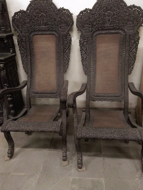 Exquisite hand crafted chairs and furniture of every size and shape got me so fascinated and transformed me to another era. Well crafted Thrones, tables, tables and so much more.