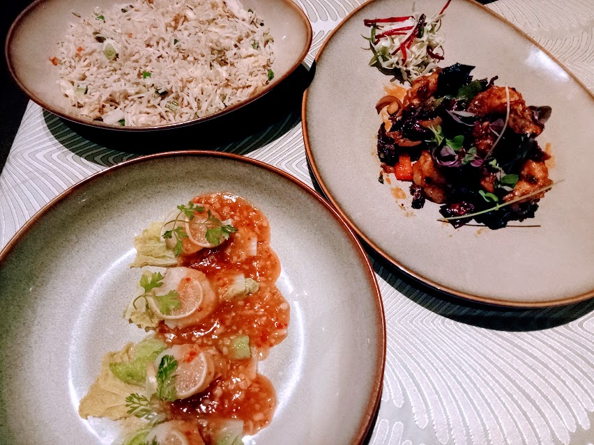 We were in for a delectable treat at Imperial China, Hilton Mumbai, a fine dining Chinese Restaurant. I got an opportunity to review the ongoing Seafood festival that started on 23rd October and is on till 4th November. My sister Farzeen Irani is a hardcore seafood fan, accompanied me that day. Totally in awe with the grandeur and classic interior, Imperial China had its own charm. The wooden carvings, paintings, murals and especially the swinging paper fans on the ceiling caught my attention. Chef Mayanand Thakur – Sous Chef, greeted us at our table and took us through the regular and special seafood menu. I decided to let him serve us with pride, rather than decide what to order.