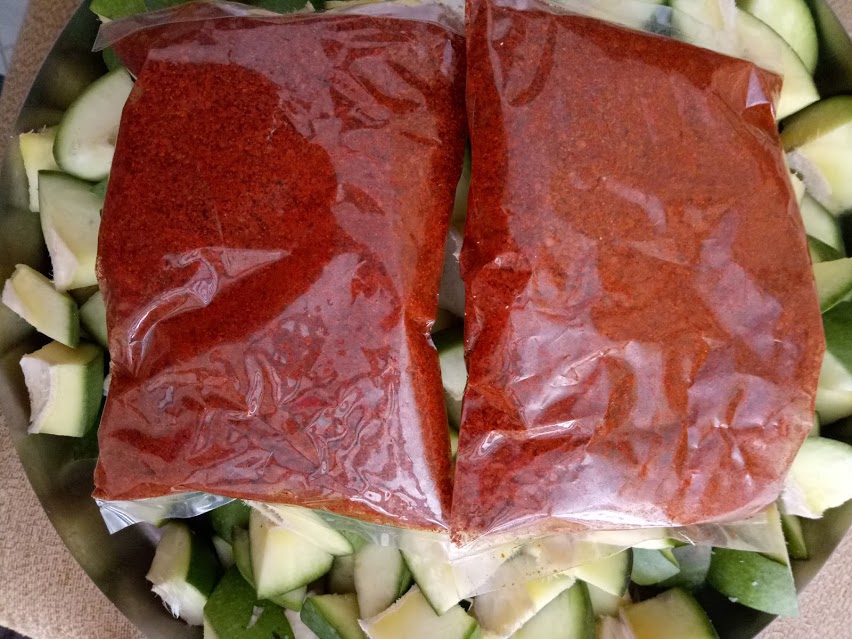 - 2 packets of ready-made pickle masala. (one packet for one Kg)