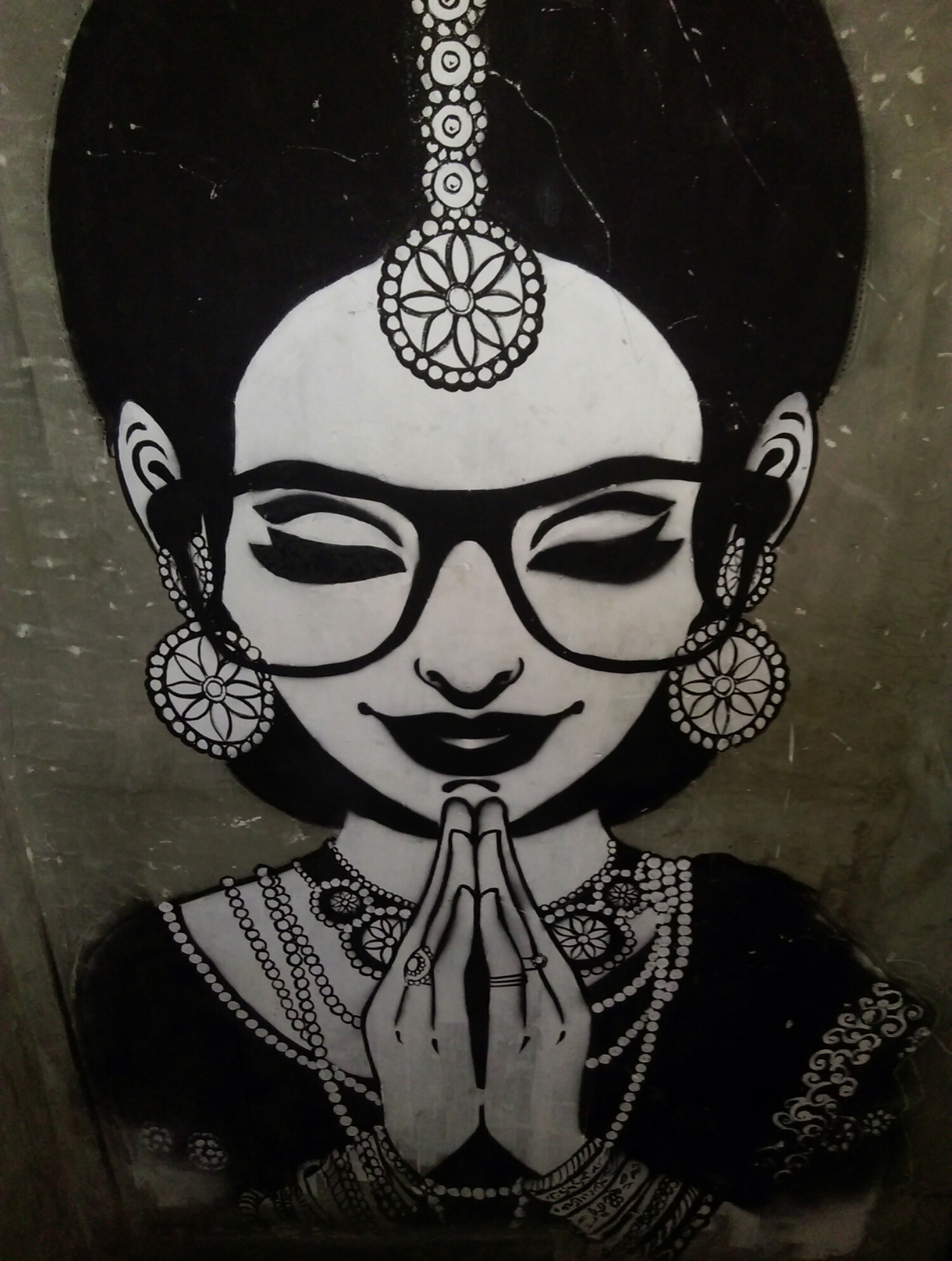 One flight up, True Tramm Trunk is situated in a shopping complex in Juhu. I got an initial feel of ‘work in progress’ till I was greeted by this giant sized Indian lady coyly doing a ‘Namaste pose’. A huge long bar with some peppy music welcomed me. Have I been here before? Coz it looked like any other bar with filament bulbs, half done brick wall, and quirky graffiti. However I was thrilled to meet my fellow food bloggers after a long time.
